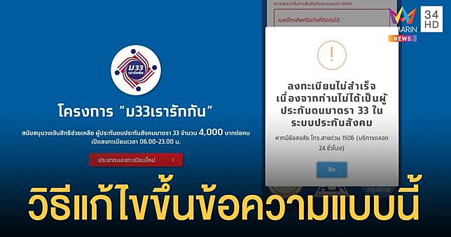 ปิดรับลงทะเบียนทบทวนสิทธิโครงการ ม33เรารักกัน วันที่ 28 มี.ค.